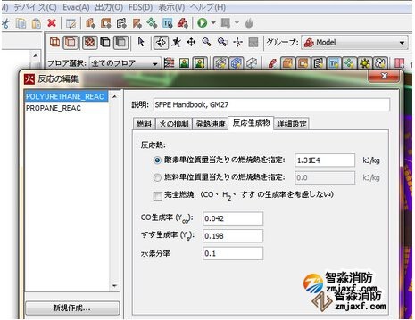 -PyroSim程序中能很方便地輸入已知的材料燃燒反應。