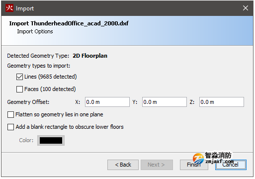 PyroSim可以從幾種CAD格式導入幾何圖形,包括buildingSMART的用于建筑信息模型(BIM)的IFC格式,AutoCAD的DXF(工程圖交換格式),DWG,FBX,DAE,OBJ和STL文件。每種類型的文件都提供了多種幾何形狀,這些幾何形狀可以直接表示為障礙物,也可以直接表示為PyroSim模型中的圖形參考。