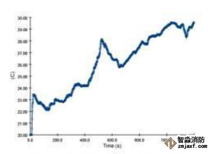 圖5.起火點(diǎn)近登記口2.4m處空氣溫度曲線