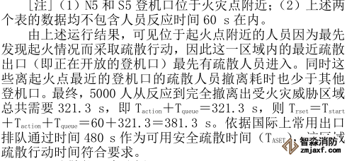 ⑤火災(zāi)發(fā)生后, 人員反應(yīng)時(shí)間為 60 s,即 T start =60 s。