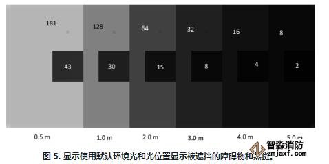 我們通過使用恒定的煙灰密度和距離觀察者越來越遠的白色障礙物來驗證遮蔽問題。障礙物的強度隨著光穿過煙霧的距離而正確降低。我們還使用在白色障礙物上顯示黑色斑塊的圖像驗證了計算出的能見度。在這種情況下,黑色補丁和白色背景都被煙霧同等地遮住了,因此韋伯對比度是恒定的,似乎不適用于這種情況。
