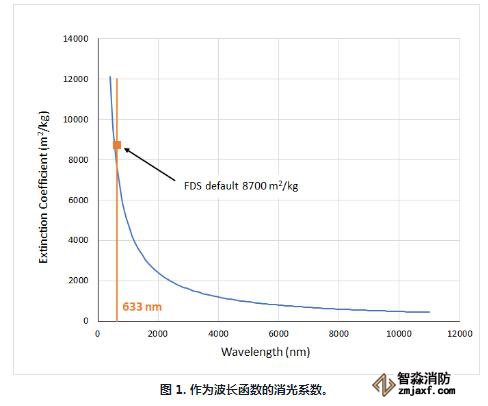 這繪制在圖1中。可見光譜從大約400nm(紫色)延伸到700nm(紅色)。評估波長-波長Wie633nm(用于獲得默認值的波長)處的質量比消光相關性Km在FDS中給出的消光系數為,該系數小于FDS()中使用的默認值,但接近推薦的不確定性下限。7626m2/kg8700 m2/kg