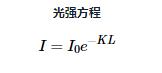 在使用簡單化學方法的火災計算中,煙霧與其主要燃燒產物一起被跟蹤。這意味著對于模型中的每個單元格,煙霧密度都是已知的。消光系數,K是用于計算能見度和光遮擋的關鍵參數。強度I通過一段距離的單色(單波長)光L通過煙霧衰減如下: