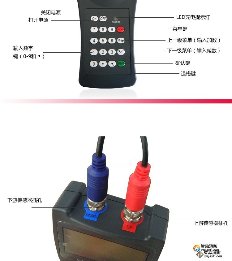 手持式超聲波流量計。其測量管徑在0-700mm,精度±1%。