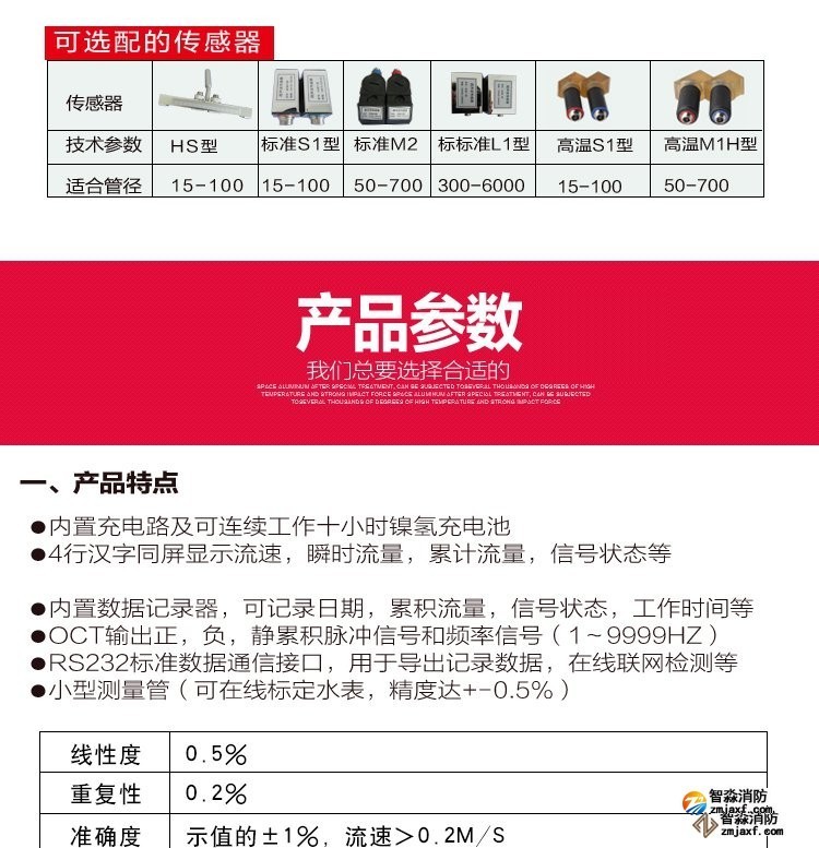 超聲波流量計測量管徑范圍:15mm~300mm,精度: