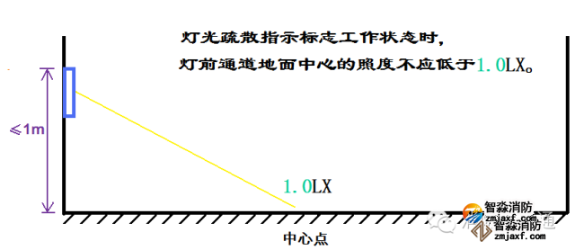 使用照度計測量應急照明燈地面中心最低照度不應低于0.5Lx,地下人防工程的照度不應低于5Lx,使用照度計測量消防控制室、消防水泵房、防煙排煙機房、消防用電的蓄電池室、自備發電機房、電話總機房等火災發生時仍需堅持工作的房間正常照明時工作面的照度和應急照明時工作面的照度,圖2-2、圖2-3。