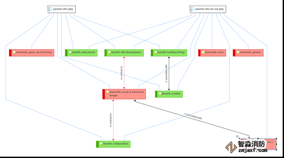 如果您通過包含文檔組向網絡添加更多信息,您可以查看受訪者屬于哪些組。與不玩游戲的父母相比,自己玩游戲的父母似乎不太擔心。