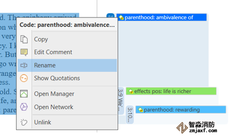 圖5:重命名邊距區域中的代碼(ATLAS.ti 9.1版Windows)